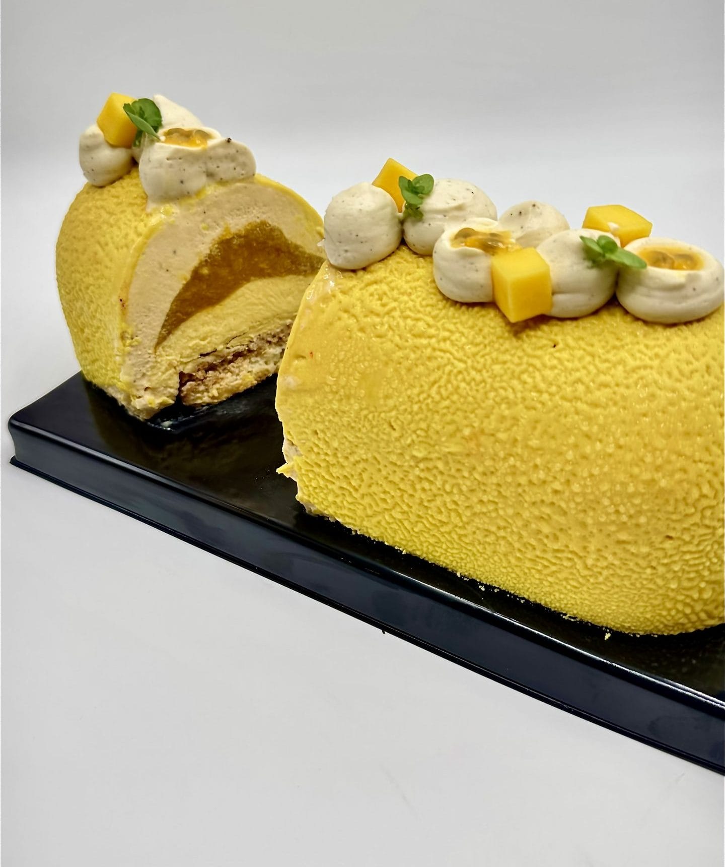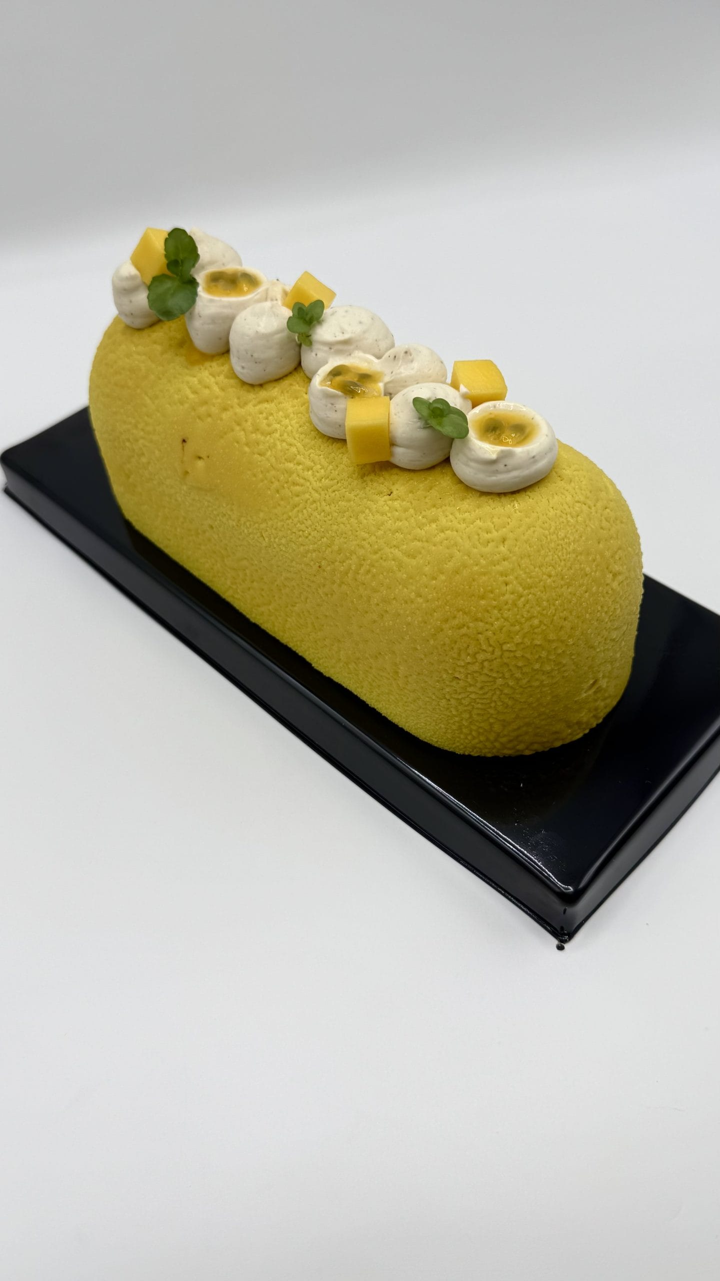 Laissez-vous emporter par notre création exotique, où la douceur du chocolat Dulcey rencontre l’intensité fruitée de la mangue et du fruit de la passion.
